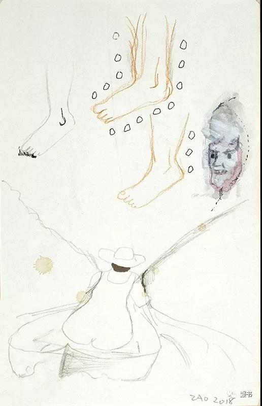 时隔多少年积攒而成的手稿与艺术家严肃的架上创作呈现出迥然不同的面貌,就像是艺术机体的另一种横截面,与严肃创作和艺术展览构成了互文关系,从而丰富了整体。这次实践无疑向着鼹书“接近艺术家书核心”的期待迈进了扎实的一步。