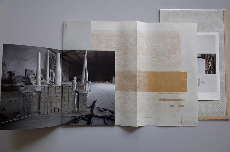 陆垒一直回避使用文字对他的创作加以描述,所以整本书只有一句话:我想写“小说”,写我的记忆和感知,以及一切荒唐的念头。鼹书在这本册子的制作中延续了对图像叙事以及视觉语言的关注, 册子由图像集成,分为三个部分:主册,是“小说”的主干,串联起诸多意象的内在的陈述,可以视其为“骨”;两本辅册,分别聚焦于作品存在的两个物理场景:工厂与展厅,展厅无疑是呈现作品最肯定的面貌,但工厂则体现一个过程,存在大量更生动的表情。