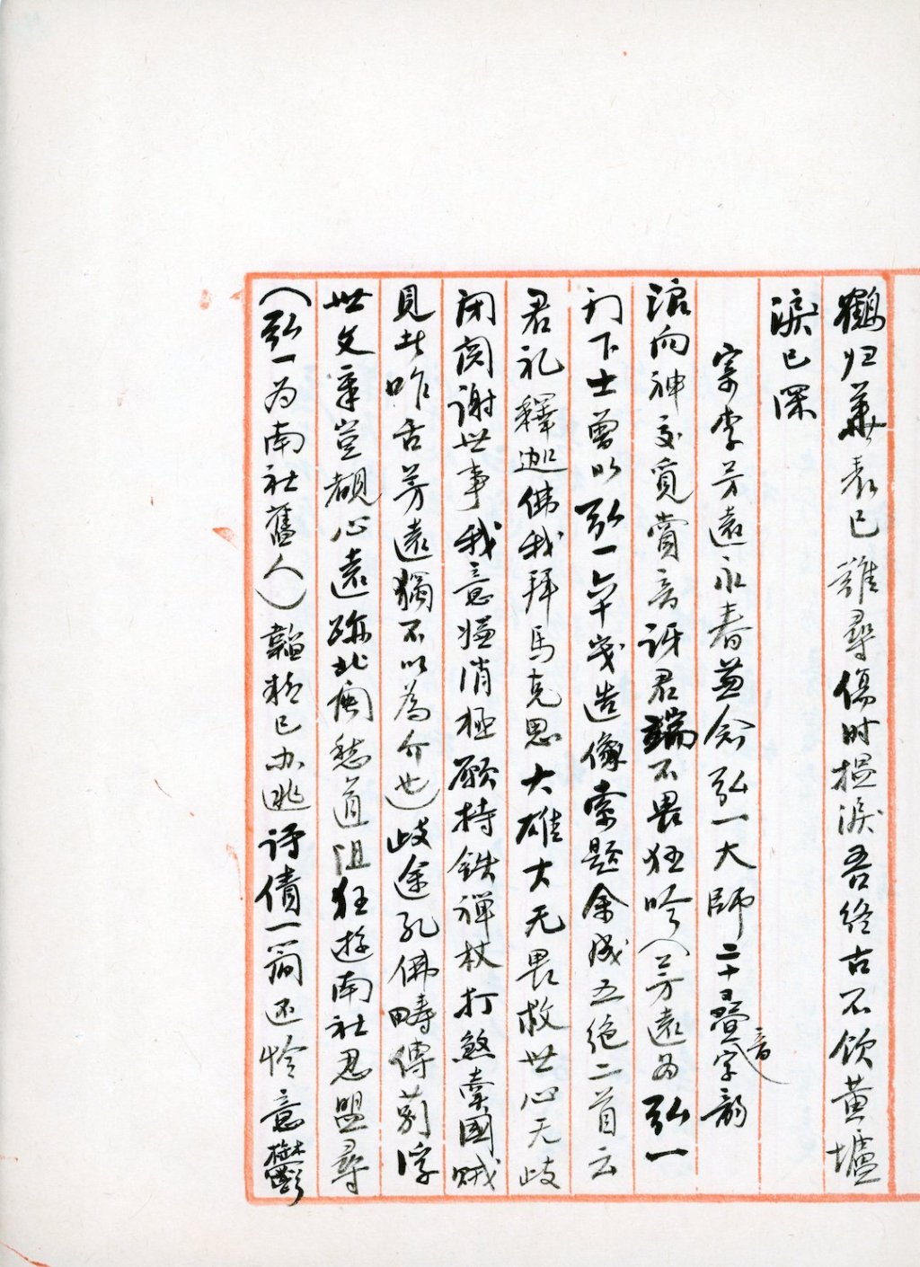 《图南集》丁集《寄李芳远永春兼念弘一大师》稿