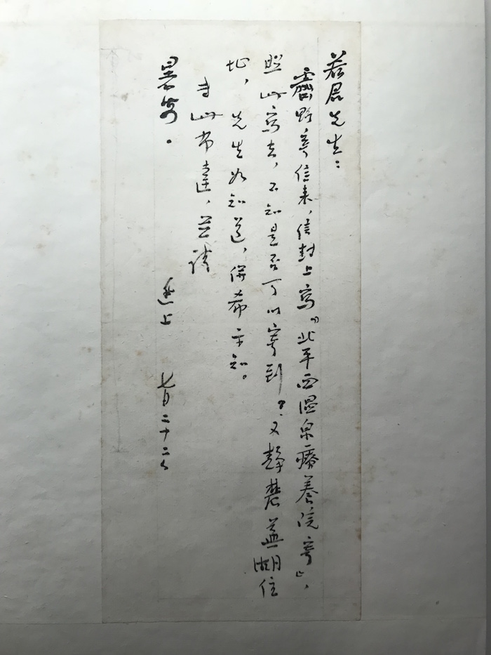 此外,展厅中,鲁迅致许寿裳(季芾)、孔另境的三封信则讲述着另一件关于革命友谊的故事。1932年暑假前,孔另境为中共党组织传递苏联之革命书刊而在天津被捕,解送北平某军事机关羁押。后经鲁迅托人全力营救,由李霁野、台静农保释出狱。鲁迅于10月25日致许寿裳信即为营救孔另境之事而作。之后,1935年,孔另境着手编辑《当代文人尺牍钞》(后改名《现代作家书简》)。鲁迅致孔另境信是前者对于后者讨要来往书信的回复。而最后一封鲁迅致孔另境信写于1936年7月22日。孔另境与李霁野、台静农结下了深厚的友谊,他们之间的来往和通讯比较频繁,所以鲁迅写信向孔另境咨询两人的住址。