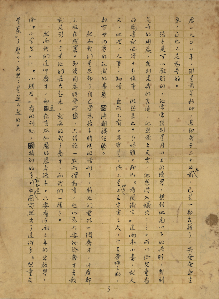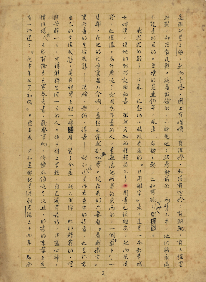 展品《看图识字》手稿则是鲁迅作于1934年5月。文章主旨是谈儿童识字教材问题,指出当时畅销的儿童识字本是“二十七年前”编定的,书中内容以及图像与1930年代脱节。