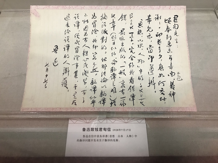 展厅现场,鲁迅致施蛰存书信