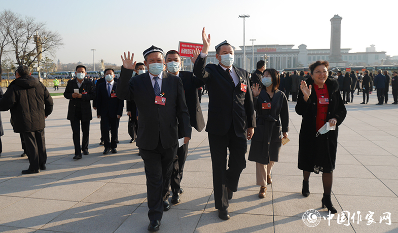 代表们招手致意