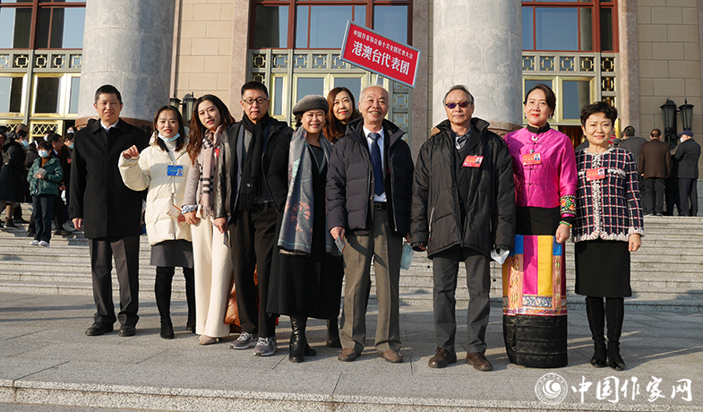 港澳台代表团及中国作协外联部工作人员在大会堂前合影