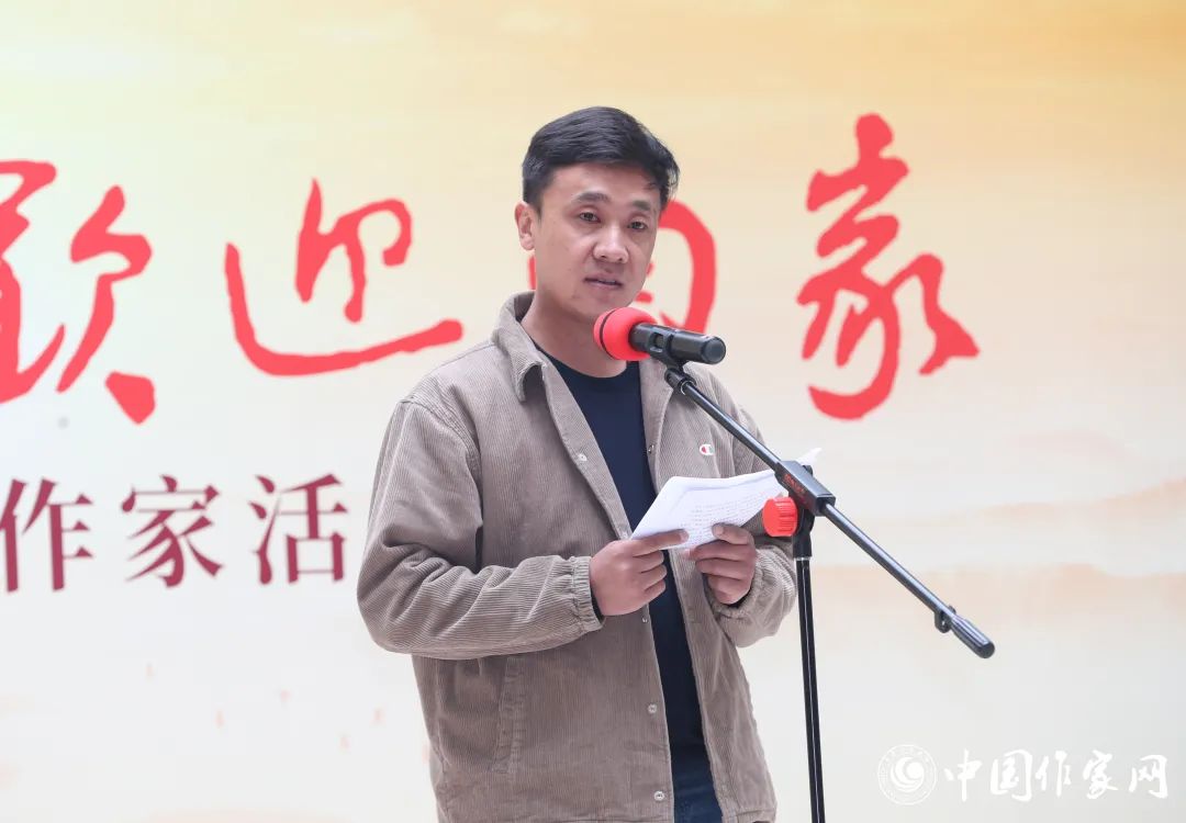 作家代表索南才让在欢迎仪式上发言。索南才让谈到,在创作的道路上,很多作家都得到了中国作协实实在在的帮助和支持,他也是在中国作协的关心和爱护下不断成长、不断提高的。希望中国作协团结作家朋友的优良传统能一直延续下去,让更多成长中的作家得到庇护与帮助,让大家在最艰难、最需要的时候,因为有中国作协而奠定坚实的基础,从而走得更高更远。