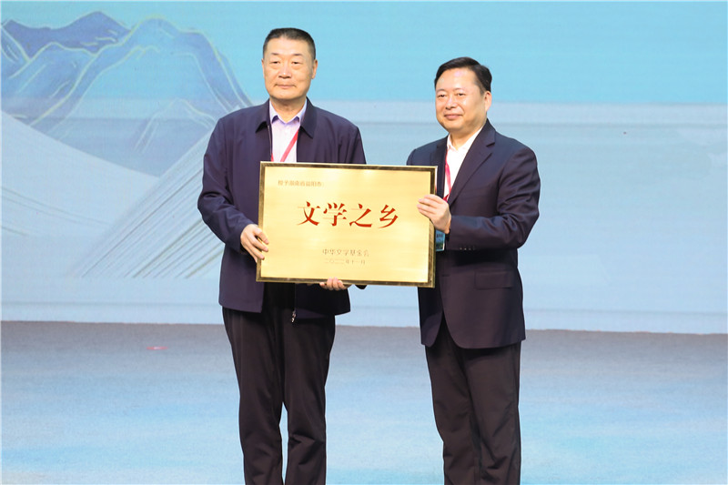徐贵祥代表中国作协向益阳市授牌