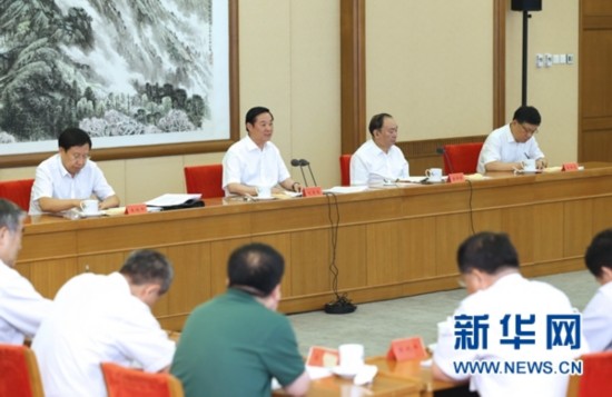 7月28日,治国理政论坛“新发展理念系列理论研讨会”首场研讨会在北京召开,中共中央政治局委员、中央书记处书记、中宣部部长刘奇葆出席并讲话。 新华社记者 马占成 摄