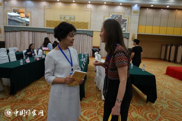 铁凝与意大利汉学家雪莲在开幕式后展开交流