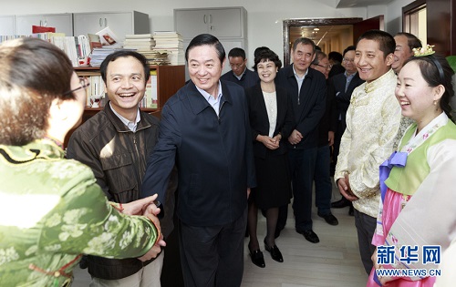 中共中央政治局委员、中央书记处书记、中宣部部长刘奇葆到作家出版集团调研文学期刊发展情况。 新华社记者丁海涛摄