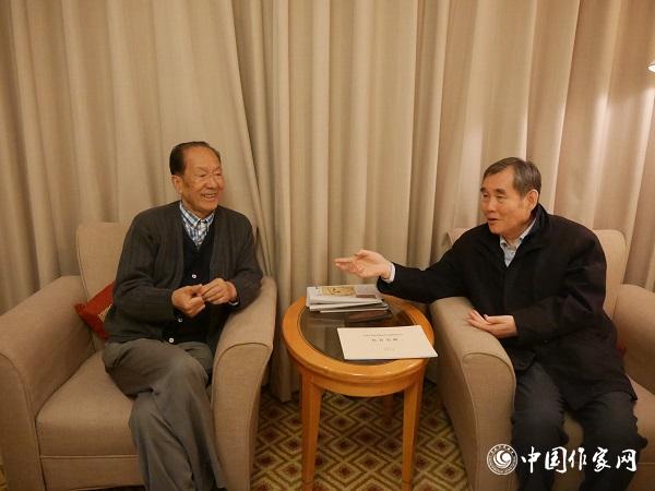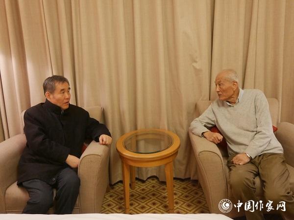 中国作协主席铁凝看望作家许怀中。王纪国 摄