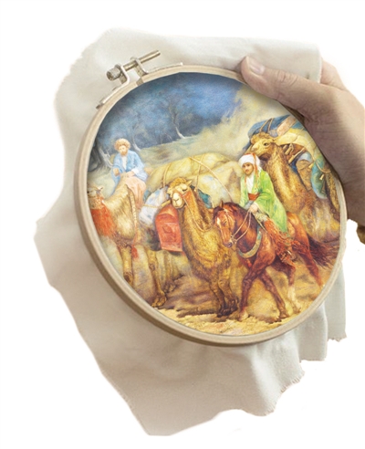 在“笔墨当写时代”的启发下,她想到,针线能不能也表现大时代?于是,她把时代精神融入针线,有了遨游太空的《我爱中华》,有了献给新中国成立60周年的《江山如此多娇》,有了悬挂在人民大会堂的《春早江南》(图④)……从创意构思到画面组织设计,姚建萍赋予了苏绣更广阔的思想性、时代性。她历时3年创作,2009年收针的巨幅作品《江山如此多娇》,幅面宽阔,气势宏大。在色彩的冷暖对比与相互映衬下,形成明朗、清澄的玉宇气象。而作品《丝绸之路》(图③)苍浑而深厚的橙黄、酱红色调似见历史的渊深与悠远。中国美术馆馆长吴为山评价,《丝绸之路》中有明与暗、光与影、动与静,每组矛盾都交织着可歌可泣的历史情怀。