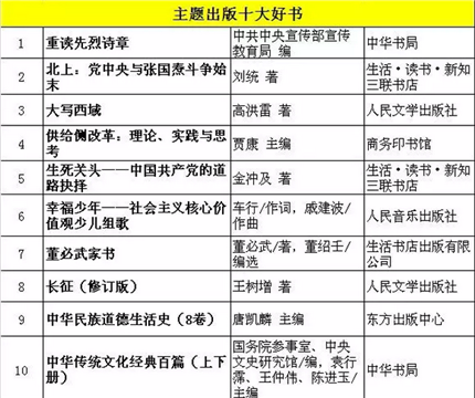 中国出版集团“中版好书2016年度榜”公布(共50种)