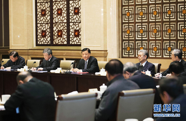 3月4日,中共中央政治局常委、中央书记处书记刘云山看望出席全国政协十二届五次会议的文艺界委员并参加讨论。 新华社记者 丁林 摄