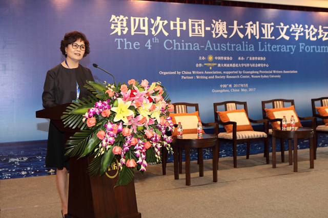 中国作协主席铁凝在致辞中谈到:“2017年,欣逢中国和澳大利亚建交45周年,中澳两国在政治互信、经济互惠、人文互通等方面取得了丰硕的成果。正如郝金斯教授所说,在‘一带一路’的新时代,我们的文学交流恰逢其时。在‘一带一路’、‘和平合作、开放包容、互学互鉴和互利共赢’理念的指引下,加强各国之间的人文交流将有利于增进民心相通,而文学交流是各国人文交往中的一个重要领域。过去30多年来,我们两国的文学交流日益加强,作家互访不断,两国作家作品的互译出版更有助于增强两国作家和民众之间的深入了解。中澳文学论坛就是我们友好交往中的一个重要举措。