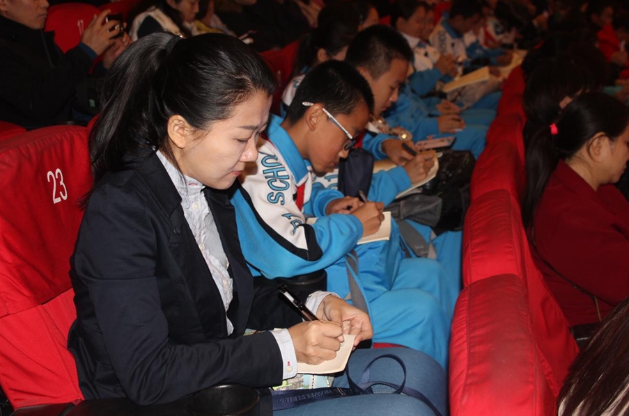 专题讲座后,首师大附中的师生们演绎了柳建伟的影视作品《血战湘江》。