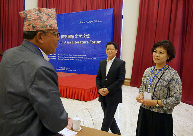 论坛期间,来自孟加拉国、尼泊尔、巴基斯坦、斯里兰卡的8位作家和中国作家阿来、赵玫、范稳、梁平、裘山山、张燕玲、邱华栋、李洱、于怀瑾等围绕“传统与交融中的文化发展”“全球语境下文学创作的个性”等具体话题展开交流。