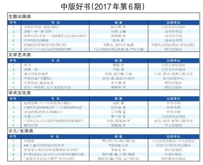 2017年第6期中版好书榜推荐 把握时代脉搏 再次激动潮流