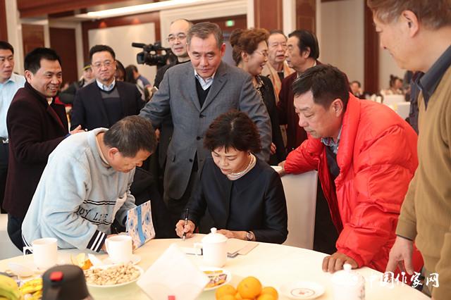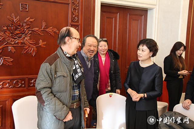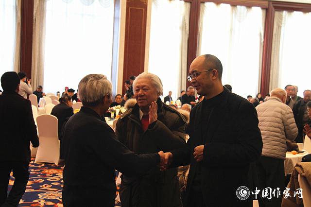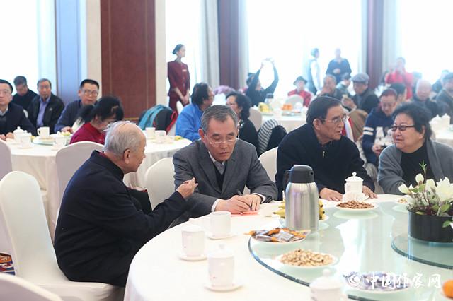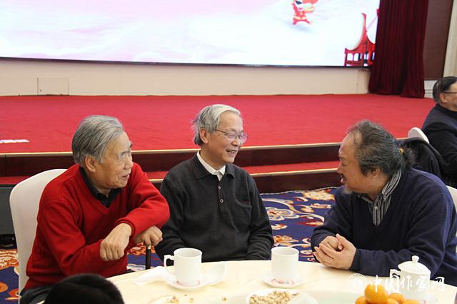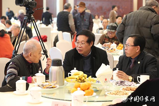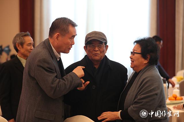 在喜庆欢快的乐曲声中,铁凝和钱小芊等中国作协党组书记处同志来到老作家老同志身边,同大家亲切握手,问候交谈,向大家致以诚挚的新春祝福。老友新朋聚在一起总有聊不完的话题,说不尽的故事,叙不完的情谊。大家互赠新书,拍照合影,回顾过去一年中国文学繁荣发展所取得的成就,为新一年文学事业和作协工作提建议谈希望。不忘初心,砥砺前行,这是广大作家和文学工作者的心声,也是中国文学由“高原”向“高峰”迈进的强大动力。