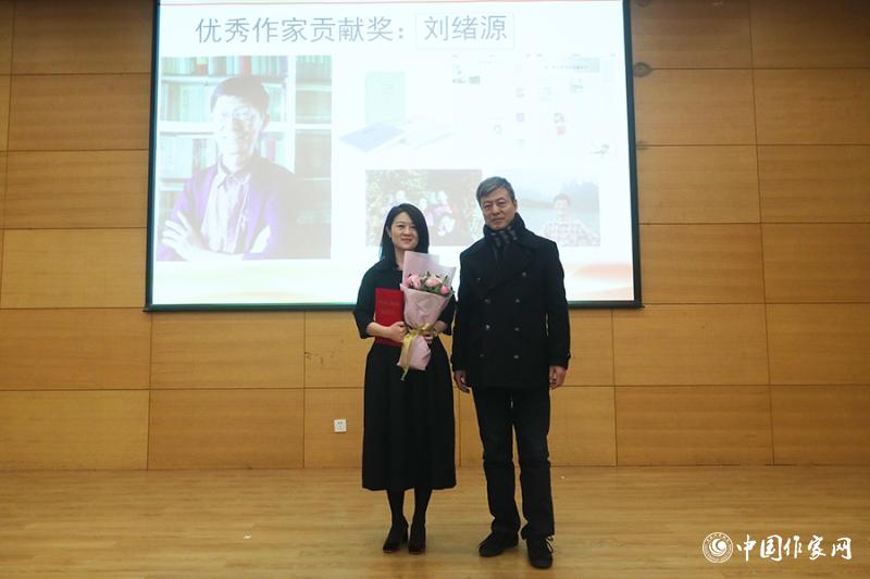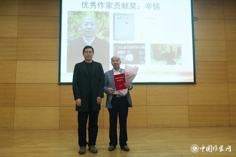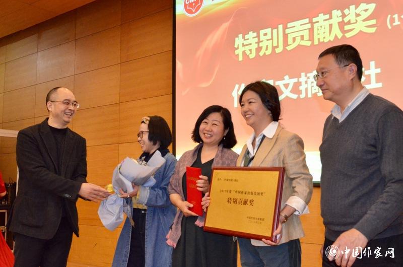 吴义勤为荣获特别贡献奖的作家文摘报社颁奖