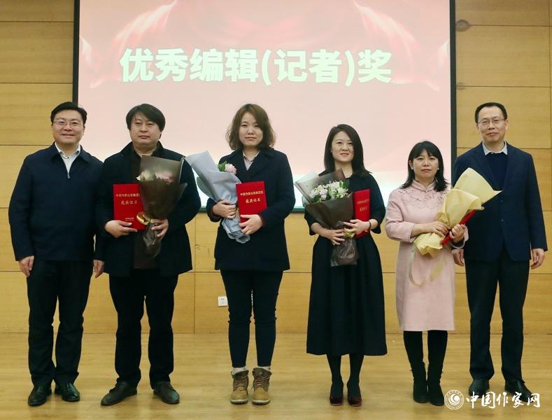 徐忠志、黄宾堂为优秀编辑(记者)赵志方、陈冲、阎瑜、兴安颁奖