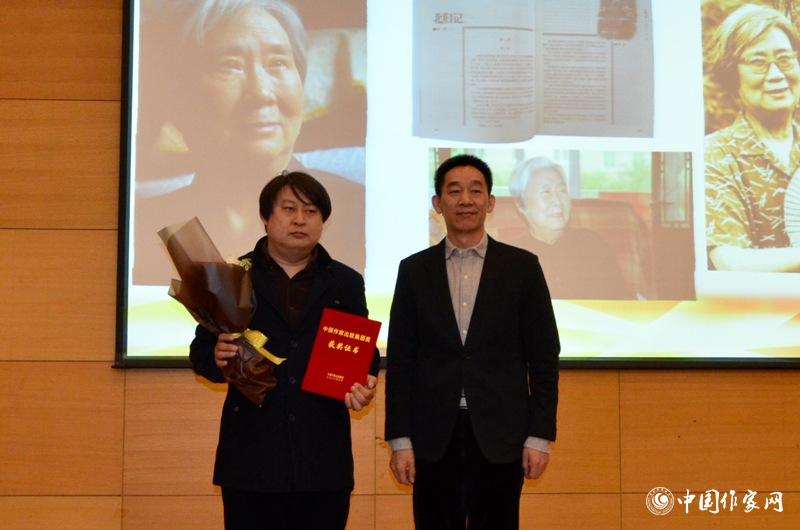 施战军向未能到场的宗璞先生颁奖,其责任编辑代为领奖