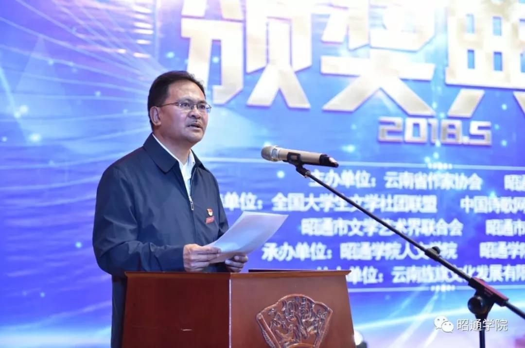 中共昭通市委常委、组织部部长陈真永,昭通市人民政府副秘书长邹邦才、昭通市文化体育局局长施华滟、昭通市文联主席吕亚平、昭阳区区委常委、宣传部部长沈洋,昭通市文联副主席艾自由,著名评论家、暨南大学文学院二级教授、国务院政府特殊津贴专家、博士生导师宋剑华博士,著名作家、《花城》杂志名誉主编田瑛,著名散文家、北京作家协会驻会专业作家周晓枫,著名诗人、《十月》诗歌编辑谷禾,青年评论家、中国作家出版集团团委书记、全国大学生文学社团联盟秘书长顾超等省外专家,著名作家、云南省作家协会副主席胡性能,著名诗人、云南省作家协会副主席雷平阳,著名作家、大理大学文学院院长、云南省作家协会副主席纳张元,著名作家、云南民族大学二级教授、云南文艺评论家协会副主席李骞等省内专家学者,昭通作家和学校党政领导出席此次颁奖典礼。