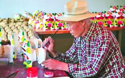 近年来,山东青岛莱西市挖掘村庄历史文化资源,以乡村振兴为核心,积极融入“乐在莱西”旅游品牌培育。产芝村泥塑柳编馆内的泥老虎是用木模磕制,并有一个“哨”。推拉挤压时,哨音就会在虎头的空腔内产生共鸣,虎嘴会发出“咕咕”的叫声。左图为手工艺人在制作泥老虎。