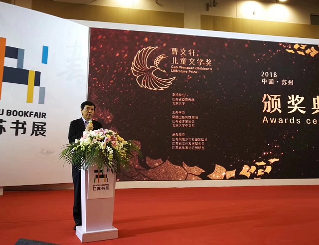 七月的苏州,夏意盎然,书香浓郁。7月13日上午,首届曹文轩儿童文学奖颁奖典礼在苏州国际博览中心举行。中国作家协会副主席高洪波,北京大学宣传部长蒋朗朗,北京大学中文系主任陈晓明,江苏省委宣传部常务副部长焦建俊,江苏省新闻出版广电局局长缪志红,江苏省作家协会主席范小青,江苏省作家协会党组成员、书记处书记、副主席汪政,凤凰集团暨凤凰传媒董事长张建康,以及作家、评论家、出版人王泉根、刘海栖、黄蓓佳、晓华、赵霞、曹文芳、何方、张锋,和中小学师生、家长等出席典礼。著名儿童文学作家曹文轩专程来到现场。