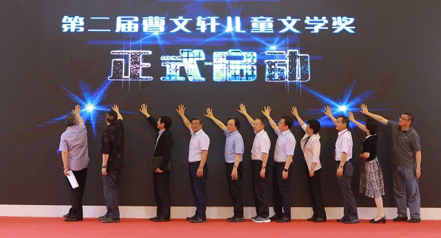 颁奖仪式最后,佘江涛宣读了第二届曹文轩儿童文学奖征稿启事并举行第二届曹文轩儿童文学奖启动仪式。