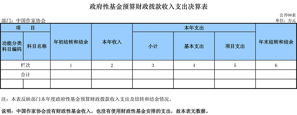 八、关于中国作协2017年度政府性基金预算财政拨款收支情况
