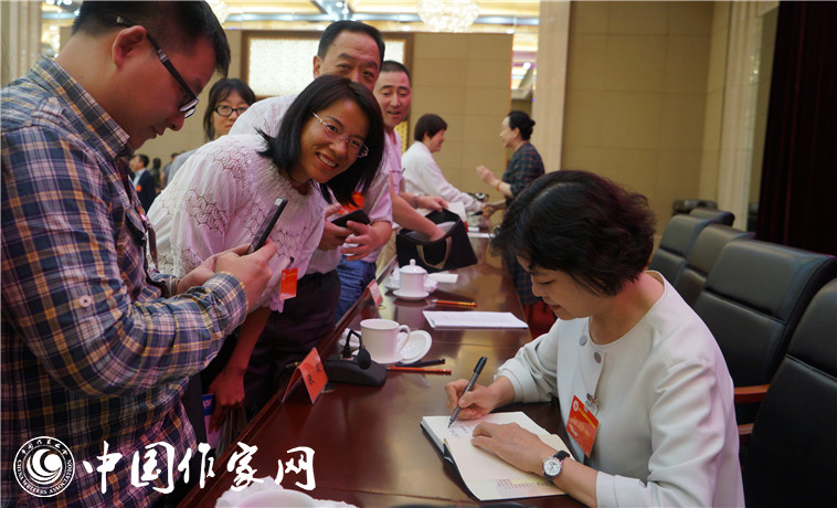 开幕式结束后,铁凝为代表们签名留念