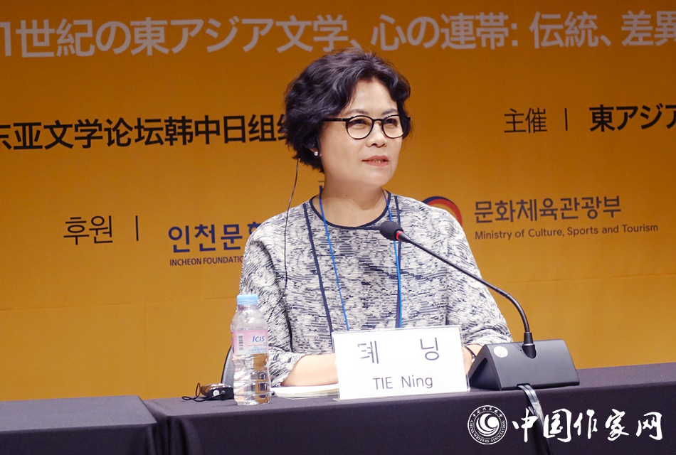 铁凝用“十年树木”来概括东亚文学论坛走过的十年时光。她说,参加论坛的每一位作家就像一棵独立的文学之树,作家们的集结成就了论坛这座文学之林。每一次论坛不断有新的作家加入,更使文学之林变得格外富有朝气和活力。在文学之林里,我们可以静默地伫立着,我们的心事也不尽相同甚至相反,然而总有风舞动的枝条,树们有时也需要喧闹和走动。论坛为文学之林创造着暂停静默、集结交流的时间,时间培育了三国作家从试探渐渐走向有话要谈。