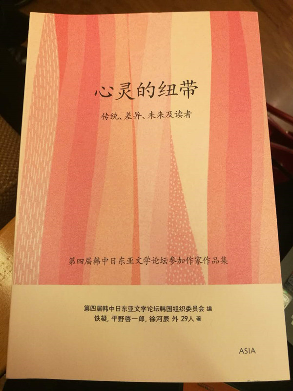 主办方向三国作家代表团赠送以中日韩三种语言出版的作家作品集