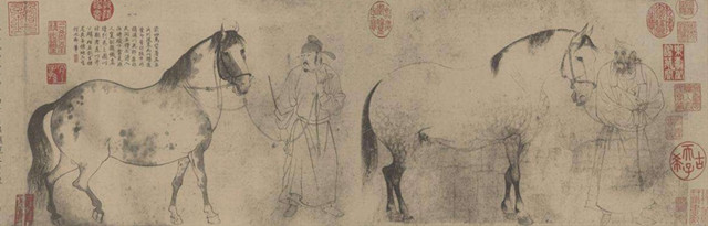 以上,是对百年前《五马图》被借出深宫为芥川龙之介所见始末的查考。但芥川龙之介在陈府过目的,远不止《五马图》一幅。芥川龙之介看到的,就包括《唐宋元画册》、燕文贵《秋山萧寺图》、宋徽宗《临古图》、王蒙《林泉清集图》、王时敏《晴岚暖翠图》、郎世宁《乾隆肖像》《百骏图》等。这些画中极品的震撼力,让这个在日本如日中天的小说家产生了想在北京留学的念头。如今,这些清宫藏画中的至宝已流散于世界各地,在任何一个空间里饱览这些书画的全部真迹都已不复可能。