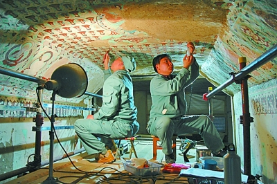 为解决古代壁画病害机理阐述不清、基础性研究薄弱、保护难度大等问题,国家文物局、科技部和甘肃省先后依托敦煌研究院成立了古代壁画保护国家文物局重点科研基地、国家古代壁画与土遗址保护工程技术研究中心、甘肃省古代壁画与土遗址保护重点实验室,通过社会科学与自然科学等多学科的交叉,借助相关领域的科研优势进一步探索适合于敦煌石窟的保护方式。