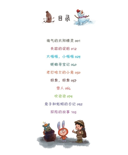 在他们之间,发生着各种奇妙的、有趣的、常常出乎意料的故事。有的令人忍俊不禁,如《水怪哔阿噗》;有的让人虚惊一场,如《长鼻怪和胆小鬼》;有的情感脉脉暖如春日,如《彩色的树叶裙》;有的则亲情隽永,令人回味,如《戴耳套的小兔》。