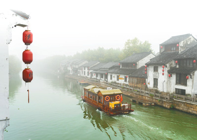 雨雾中的江苏无锡清名桥古运河水弄堂。 资料图片