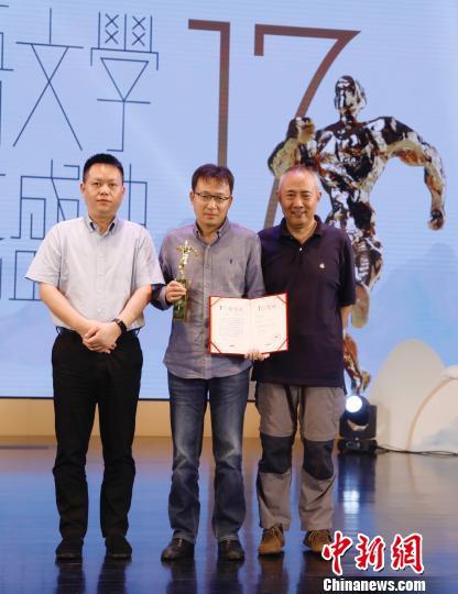 李洱(中)荣获“年度杰出作家”称号。主办方供图