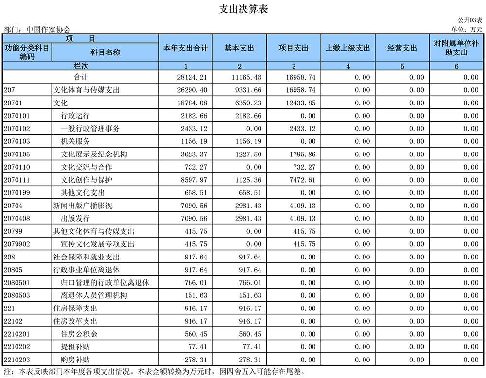 2018年中国作协部门决算表如下: