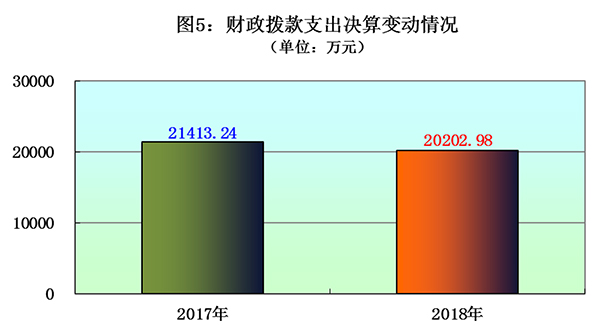 2018年度财政拨款支出20202.98万元, 占本年支出合计的73.47%。与2017年相比,财政拨款支出减少1210.26万元,下降5.65%。