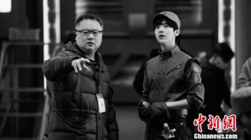 资料图:《上海堡垒》拍摄现场,滕华涛导演给演员鹿晗讲戏。