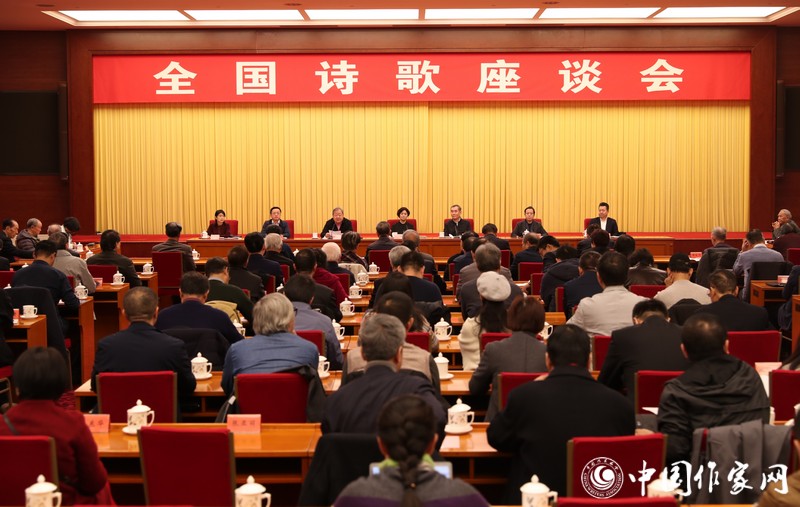 11月28日,由中国作协主办的全国诗歌座谈会在京开幕。中国作协主席铁凝出席并致辞。中国作协党组书记、副主席钱小芊出席并讲话。中国作协名誉副主席、诗人贺敬之致信祝贺。中国作协副主席吉狄马加主持开幕式。中国作协副主席李敬泽、阎晶明,中国作协书记处书记邱华栋、鲁敏出席会议。严阵、周良沛、晓雪、黄东成、郑伯农、丁国成、吕进、顾浩、郑欣淼、叶延滨、舒婷、梁平、杨克、宗仁发、娜夜、何向阳、刘笑伟等来自全国各地的110多位诗歌界代表参加会议。