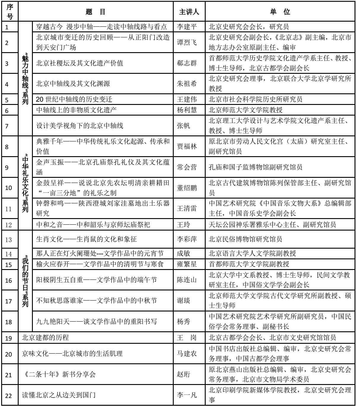 附:2020年“首图讲坛•乡土课堂”北京历史文化科普讲座计划一览表
