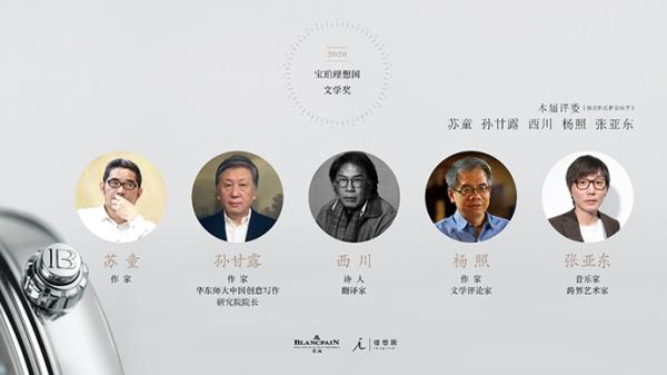 从宝珀理想国文学奖设立之初,为了公正开放,评委每年轮换。评审团的构成包括作家、文化学者、评论家以及跨界评委,当代文学有很多跨界的可能性。对于此次嘉宾的选择,理想国文学中心总编辑李恒嘉介绍道:“苏童是华语世界的重量级作家,孙甘露是先锋作家也是青年文学杂志《萌芽》的社长以及华东师大中国创意写作研究院院长,西川老师是国际级的诗人、翻译家,杨照老师多年横跨小说、文学评论、历史书写,张亚东老师是许多一线音乐人的制作人,也是跨界艺术家,他们的评委组合将为这届文学奖评选出我们希望的独特的青年文学作品。”