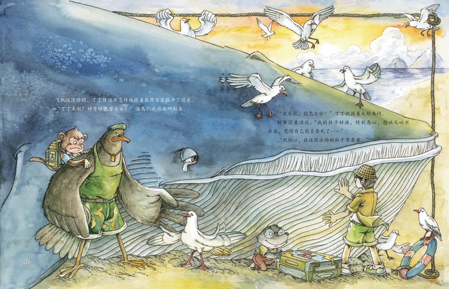 蓝鲸因误食大量塑料袋浑身疼痛,在沙滩上搁浅,得到消息的神奇绿色营来救蓝鲸了,丁丁带领大家齐心协力,克服种种困难,将所有塑料袋清理出来,帮助蓝鲸重回海洋。