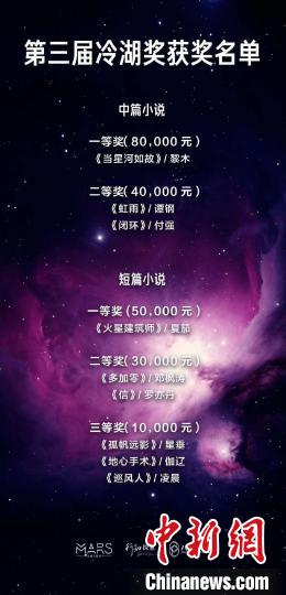 图为第三届冷湖奖获奖名单。 孙睿 摄
