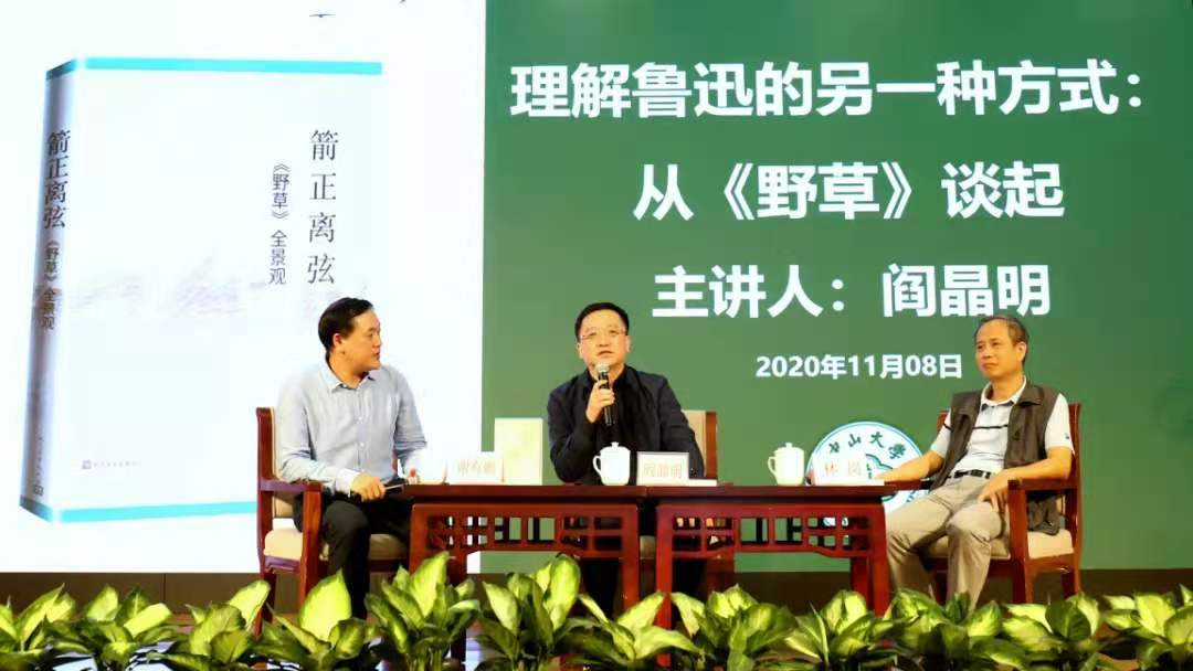 颁奖典礼前,阎晶明作题为《理解鲁迅的另一种方式:从<野草>谈起》的学术讲座。他结合其最新的学术散文集《箭正离弦:⟨野草⟩全景观》,关注和研究鲁迅创作《野草》的现实背景,在丰富的材料和研究的基础上,将鲁迅生活的每个细枝末节与其创作、思想、精神世界相关联。从本事出发探讨鲁迅对本事的改造、升华、艺术,同时观察《野草》的发表、出版、传播史。作者在材料与观点之间自在穿行,是重新理解鲁迅的一次成功尝试。主讲人还与中山大学中国语言文学系教授林岗、谢有顺就主题开展了学术对谈。