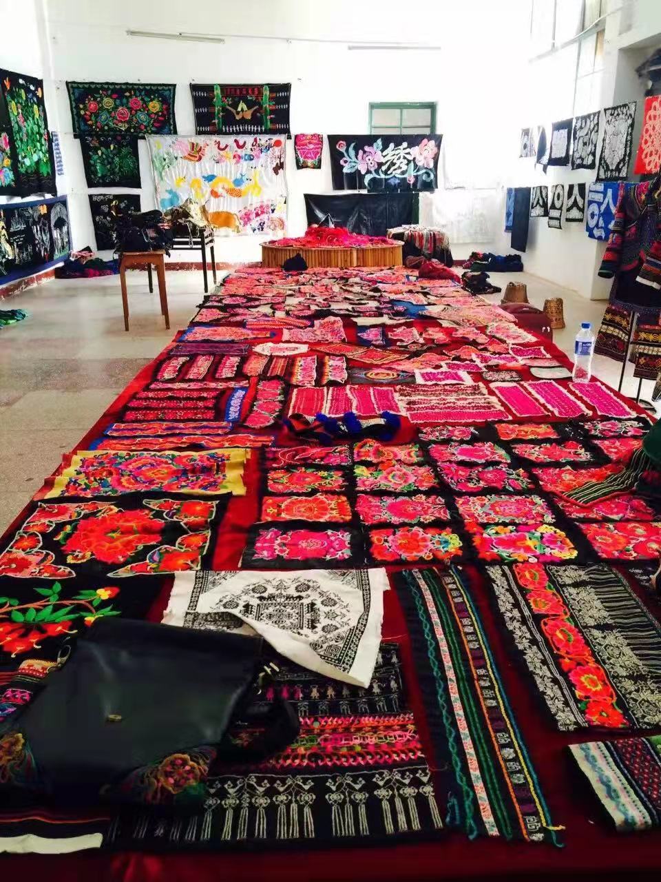 这条裤子不久前被云南艺术学院的学生拿去鉴定,是康熙年间的绣品,是李如秀最老的一件藏品。当地老人有用绣品陪葬的习惯,大量老绣片随着老人身故随葬地下,有些绣法也就此失传。李如秀觉得可惜,一家家跑去问当地老绣娘收了来,有些绣片是谈了好多年才买到手。如今受商品经济冲击,还在做彝绣的绣娘越来越少,李如秀鼓励她们,只要绣了东西出来,她都花钱收来。