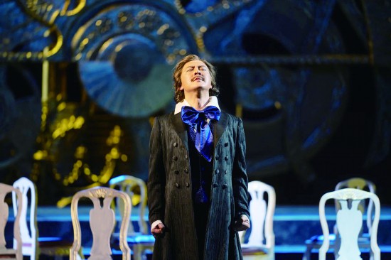 此外,本剧的空间创构也为经典阐释赋予了足够的想象动能。对空间的理解是关乎戏剧美学的根本问题,也是编导艺术创作最重要的问题。高明的空间设计能够作为形式本身参与戏剧的叙事和意蕴的表达。该剧的“三度空间”巧妙地照应了“三个世界”:海上、尘世和监狱。舞台空间选择了可以自动升降、自由变换角度,可封闭和开放的“框式内台”作为伊夫堡监狱的主体空间,其余的演出场景则在“框式内台”之外展现。裹挟一切的摧枯拉朽的海洋的在场,是宇宙绝对力量的“现身”,作为一种永恒、神秘、自由的象征力量存在,构成了基督山伯爵的另一种心灵意象,也呈现出一个垂直向度的终极追问:如果生命仅仅是一个“瞬间”,人应该如何选择自己的存在方式?