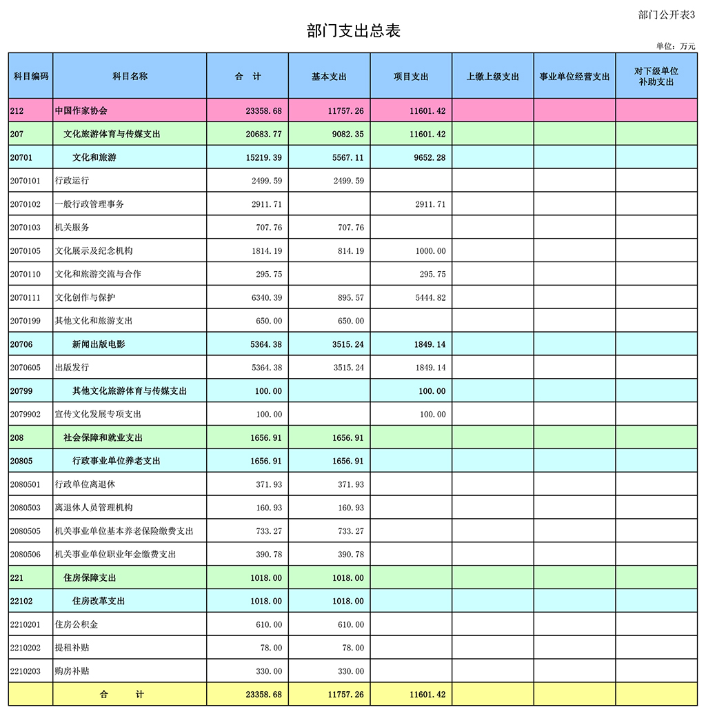 2021年中国作家协会部门预算报表如下: